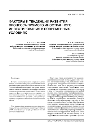 Факторы и тенденции развития процесса прямого иностранного инвестирования в современных условиях