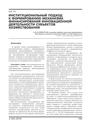 Институциональный подход к формированию механизма финансирования инновационной деятельности субъектов хозяйствования