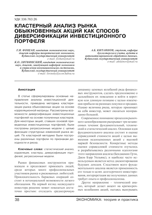 Кластерный анализ рынка обыкновенных акций как способ диверсификации инвестиционного портфеля