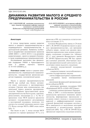 В статье представлен анализ развития малого и среднего предпринимательства и индивидуального предпринимательства в долгосрочной динамике. Выявлены особенности воздействия экономических кризисов (2008–2009 гг. и 2012–2014 гг.) на динамику развития микро-, малого и среднего бизнеса, а также индивидуальных предпринимателей.