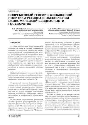 Современный генезис финансовой политики региона в обеспечении экономической безопасности государства