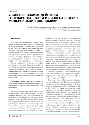 Усиление взаимодействия государства, науки и бизнеса в целях модернизации экономики