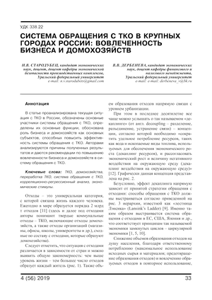 В статье проанализирована текущая ситуация с ТКО в России, обозначены основные участники системы обращения с ТКО, определены их основные функции, обоснована роль бизнеса и домохозяйств как основных субъектов, способных повысить эффективность системы обращения с ТКО. Авторами анализируются причины полученных результатов и даются рекомендации по повышению вовлеченности бизнеса и домохозяйств в систему обращения с ТКО.