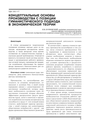 Концептуальные основы производства с позиции гуманистического подхода в экономической теории