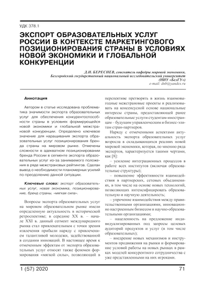 Экспорт образовательных услуг России в контексте маркетингового позиционирования страны в условиях новой экономики и глобальной конкуренции