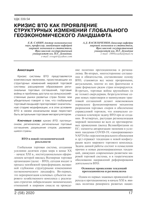 Кризис ВТО как проявление структурных изменений глобального геоэкономического ландшафта
