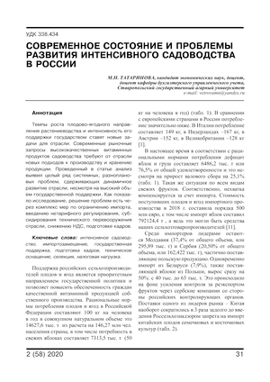 интенсивное садоводство, импортозамещение, государственная поддержка, подготовка кадров, техническое оснащение, селекция, налоговая нагрузка
