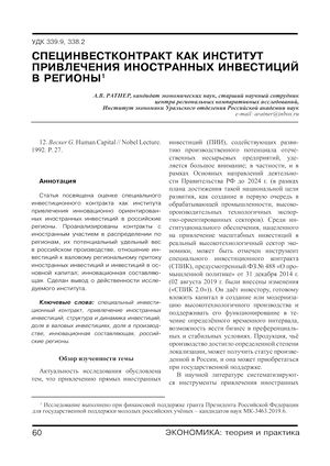 Специнвестконтракт как институт привлечения иностранных инвестиций в регионы