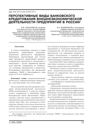 В статье исследована сущность и виды банковского кредитования внешнеэкономической деятельности предприятий. Предложены перспективные для России виды банковского кредитования внешнеэкономической деятельности экспортеров и импортеров с учетом зарубежной банковской практики. Определены их особенности, основные преимущества и недостатки.