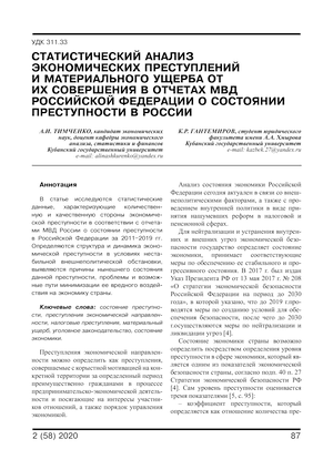 Статистический анализ экономических преступлений и материального ущерба от их совершения в отчетах МВД Российской Федерации о состоянии преступности в России