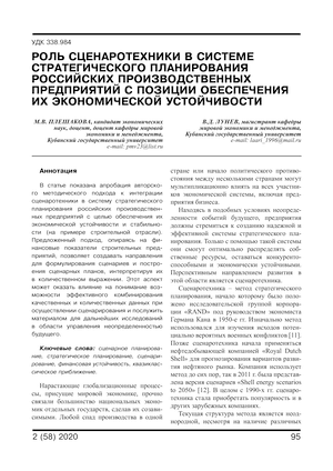 Роль сценаротехники в системе стратегического планирования российских производственных предприятий с позиции обеспечения их экономической устойчивости