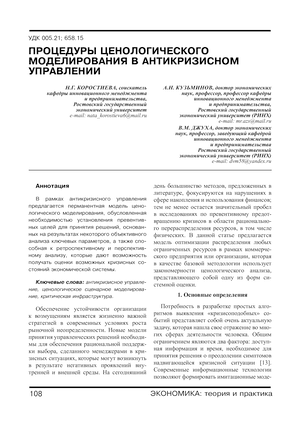 антикризисное управление, ценологическое сценарное моделирование, критическая инфраструктура