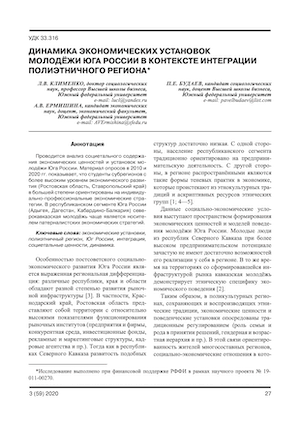 Динамика экономических установок молодёжи Юга России в контексте интеграции полиэтничного региона