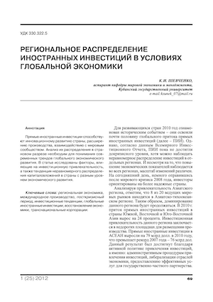 Региональное распределение иностранных инвестиций в условиях глобальной экономики
