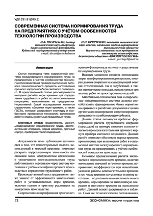 Современная система нормирования труда на предприятиях с учётом особенностей технологии производства