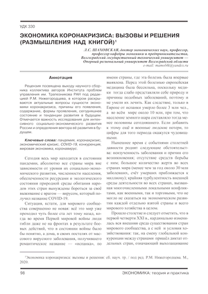 Экономика коронакризиса: вызовы и решения (размышления над книгой)