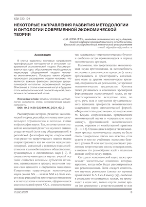 Некоторые направления развития методологии и онтологии современной экономической теории