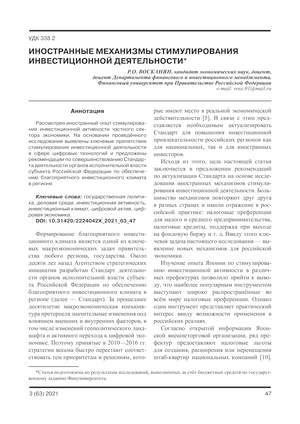 Иностранные механизмы стимулирования инвестиционной деятельности