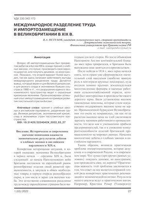 Международное разделение труда и импортозамещение в Великобритании в XIX в.