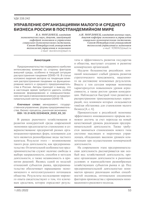Управление организациями малого и среднего бизнеса России в постпандемийном мире