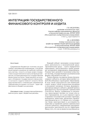 Современная бюджетная политика сегодня требует неискаженной информации, способной акцентировать внимание на наиболее проблемных участках, получить которую можно посредством осуществления контрольной функции финансов, реализуемой в государственном финансовом контроле. Наметившиеся интеграция и сближение государственного финансового контроля и аудита позволяют получить более адаптированный и отвечающий современным требованиям инструмент контроля — аудит эффективности бюджетных расходов.