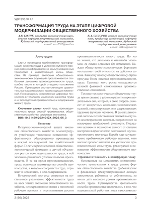 Трансформация труда на этапе цифровой модернизации общественного хозяйства