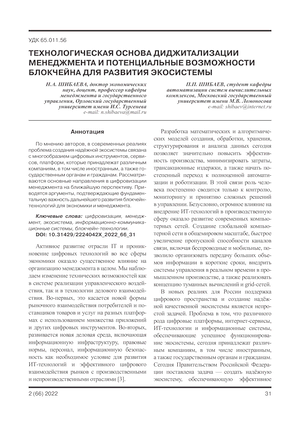 Технологическая основа диджитализации менеджмента и потенциальные возможности блокчейна для развития экосистемы