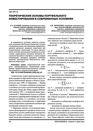 Теоретические основы портфельного инвестирования в современных условиях