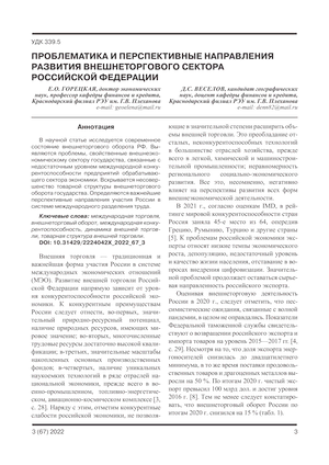Проблематика и перспективные направления развития внешнеторгового сектора Российской Федерации