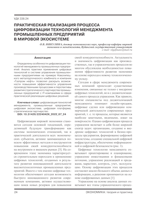 Практическая реализация процесса цифровизации технологий менеджмента промышленных предприятий в мировой экосистеме