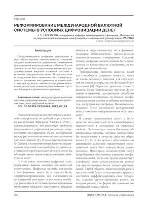 Продолжающаяся цифровая революция и рост числа крупных технологических компаний создают возможности радикального изменения традиционной модели денежного обмена. В этой связи в статье был проанализирован вопрос реформирования мировой валютной системы в условиях цифровизации денег. По результатам исследования было выявлено, что конвертируемость денежных инструментов и взаимодействие между экосистемами платформ может иметь решающее значение для снижения торговых барьеров и развития конкуренции.