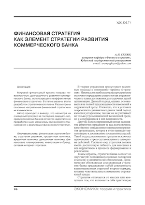Финансовая стратегия как элемент стратегии развития коммерческого банка
