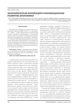 Последствия глобального финансово-экономического кризиса 2008—2012 гг. и начавшийся с 2020 г. новый финансово-экономический кризис показали необходимость структурной перестройки экономики в направлении формирования инновационной экономики. Показано, что научная проблема формирования инновационной экономики обусловлена отсутствием научной концепции инновации как экономического явления. Разработаны научная концепция экономической инновации и механизм инновационного развития экономики.