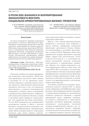 О роли ESG-банкинга в формировании финансового вектора социально ориентированных бизнес-проектов