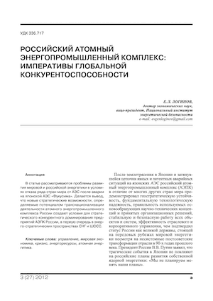 Российский атомный энергопромышленный комплекс: императивы глобальной конкурентоспособности
