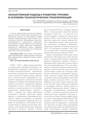 Экосистемный подход к развитию туризма в условиях технологических трансформаций