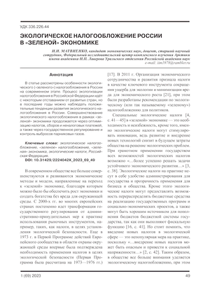 Экологическое налогообложение России в «зеленой» экономике