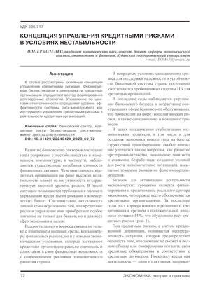 Концепция управления кредитными рисками в условиях нестабильности