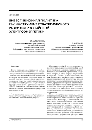 Инвестиционная политика как инструмент стратегического развития российской электроэнергетики