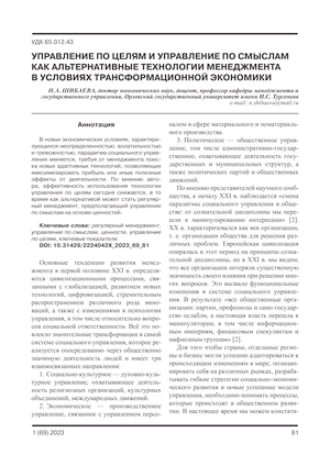 Управление по целям и управление по смыслам как альтернативные технологии менеджмента в условиях трансформационной экономики