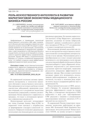 Роль искусственного интеллекта в развитии маркетинговой экосистемы медицинского бизнеса России