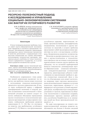 Ресурсно-полезностный подход к исследованию и управлению социально-экономическими системами как фактор их устойчивого развития