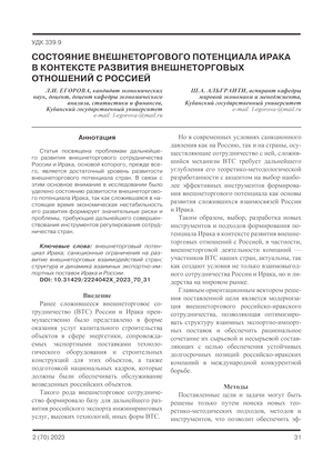 Состояние внешнеторгового потенциала Ирака в контексте развития внешнеторговых отношений с Россией