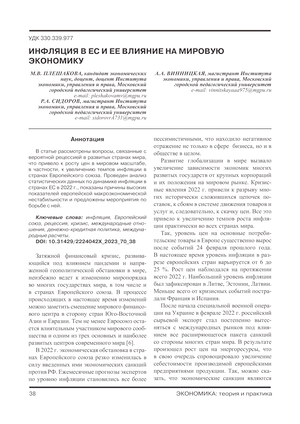 В статье рассмотрены вопросы, связанные с вероятной рецессией в развитых странах мира, что привело к росту цен в мировом масштабе, в частности, к увеличению темпов инфляции в странах Европейского союза. Проведен анализ статистических данных по динамике инфляции в странах ЕС в 2022 г., показаны причины высоких показателей европейской макроэкономической нестабильности и предложены мероприятия по борьбе с ней.