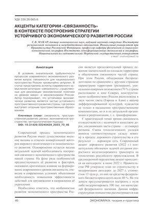 Акценты категории «связанность» в контексте построения стратегии устойчивого экономического развития России