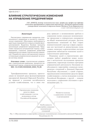 - Донец Л.И. Влияние трансформационных изменений экономики Донецкой Народной Республики на организацию предпринимательской деятельности // Стратегия предприятия в контексте повышения его конкурентоспособности. 2021. № 10. С. 93—97.
