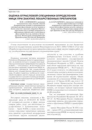 Оценка отраслевой специфики определения НМЦК при закупке лекарственных препаратов