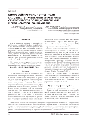 Цифровой профиль потребителя как объект управления в маркетинге: семантическое позиционирование и библиометрический анализ