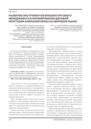 Развитие инструментов внешнеторгового менеджмента в формировании деловой репутации компаний Ирака на мировом рынке