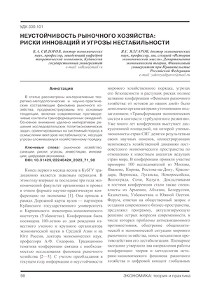 1. Феномен рыночного хозяйства: от истоков до наших дней. Трансформация экономических систем в контексте турбулентного развития: материалы XI Междунар. науч.-практ. конф. по экономике / под ред. д-ра экон. наук, проф. В.А. Сидорова, д-ра экон. наук, проф. Я.С. Ядгарова. Краснодар, 2023.